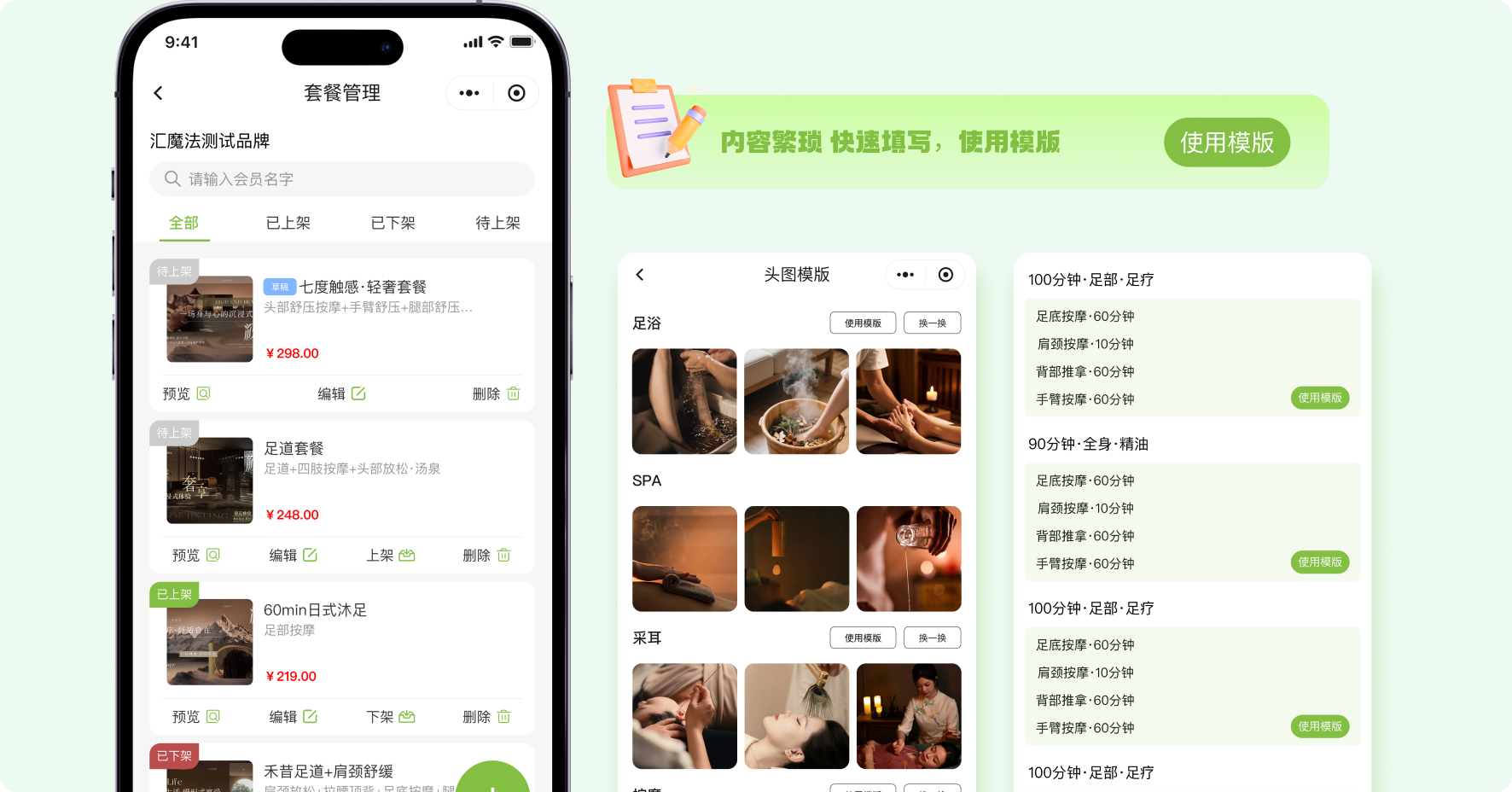 省麻烦防出错;数据报表直观清晰,全方位支持您的养身业务运营。
