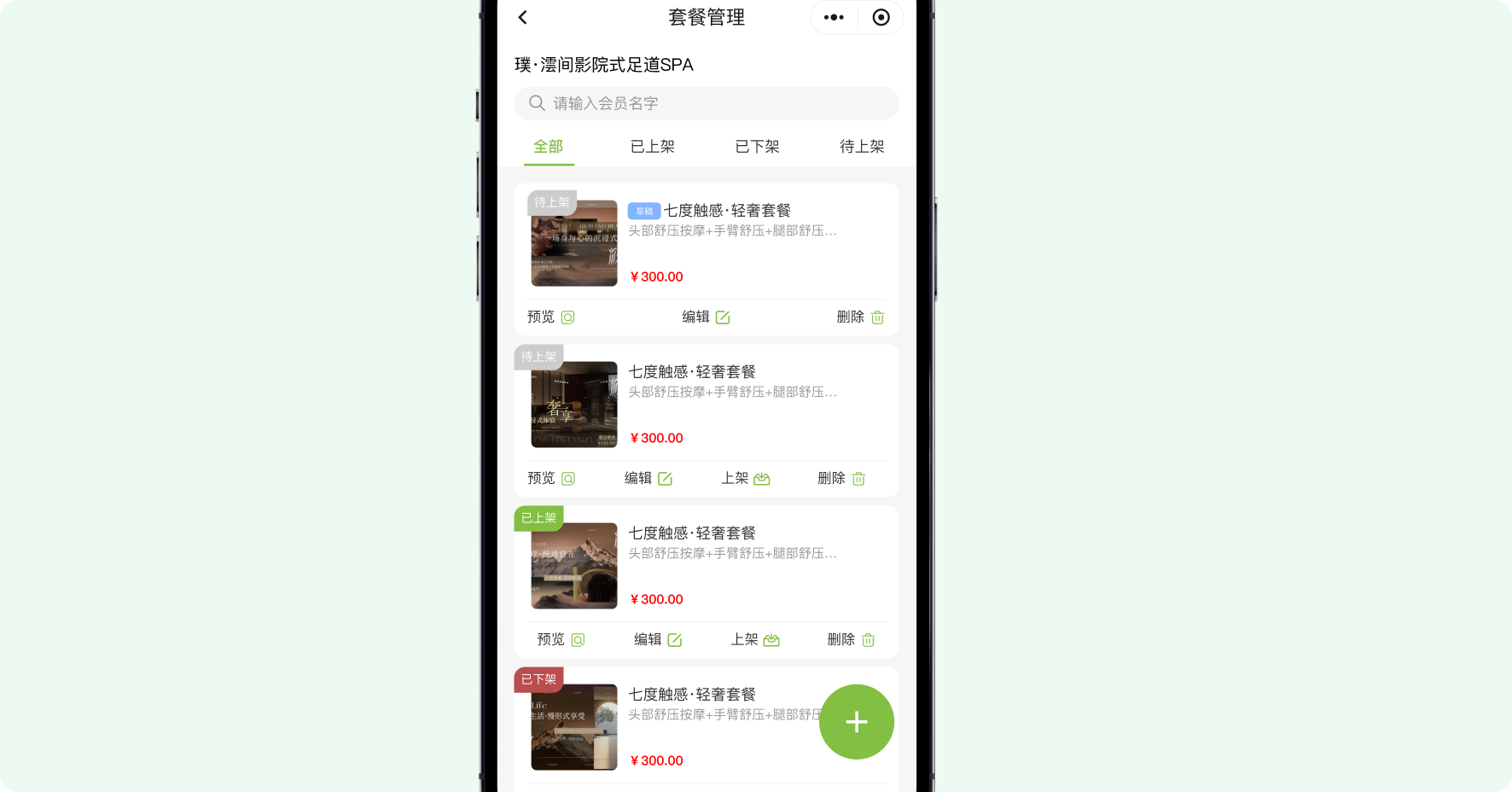 套餐上架、下架、编辑状态清晰可查、操控简单,上线后仍可随时调整与维护