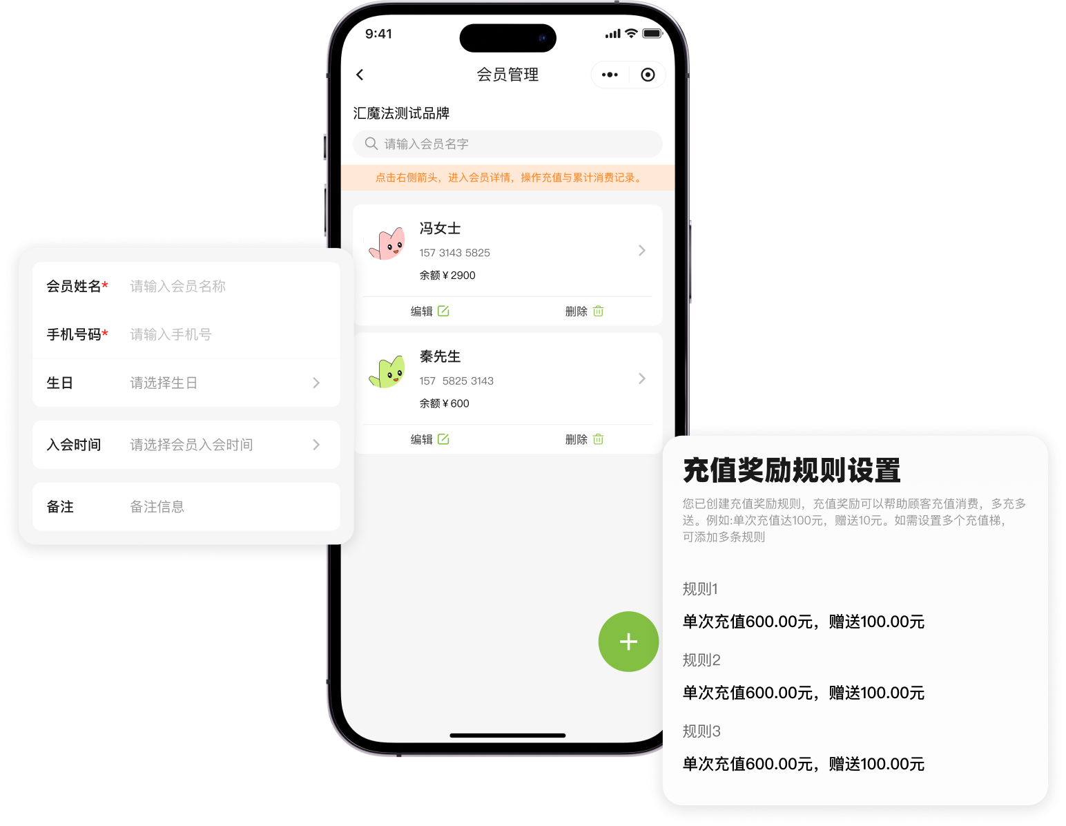 专为养生业务打造的会员管理工具,支持会员添加、会员充值、充值规则自定、消费留存等功能。抛弃手工记录,无需外购系统,运营顾客更方便,会员关系更稳固。